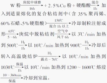 b.文獻[6]介紹了超細鎢粉的注射成形工藝和熔滲工藝,工藝流程如下: